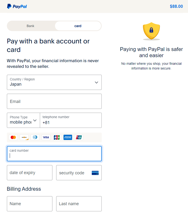 • We recommend you save your information and create a PayPal account to facilitate your next payment.